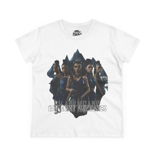 By Any Means Empowerment Women’s Midweight Cotton Tee - 'By Any Means' Graphic Design